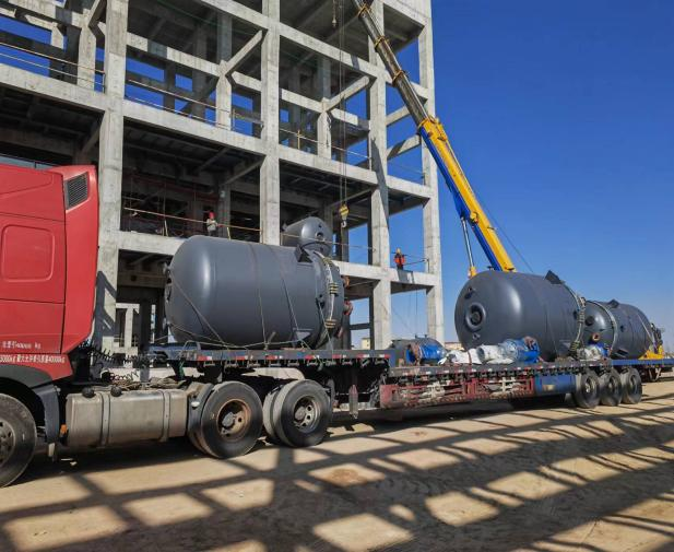 截止目前,戊基車間的71臺反應釜,已到場59臺,乙基車間的32臺反應釜,已到場26臺,儲罐區16臺儲罐已全部制作安裝完成。其余的動靜設備將按原計劃陸續到場。